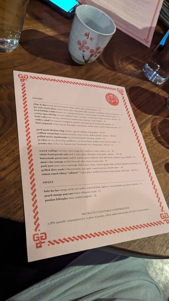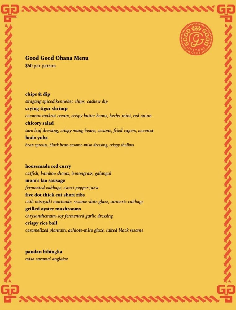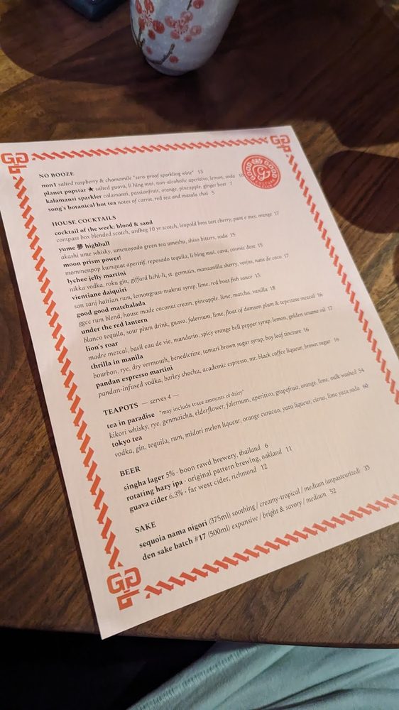 Good Good Culture Club, located in San Francisco, offers a trendy and intimate dining experience with a focus on New American cuisine. This Asian-owned establishment provides a variety of dishes, including unique options like stuffed chicken wings and pork jowl. The ambiance is modern and colorful, with a vibrant atmosphere perfect for gatherings. Customers have praised the fresh flavors and creativity of the dishes, such as the whole fried petra sole and tuna tataki. The menu features a range of options, from beef carpaccio to grilled oyster mushrooms, appealing to a diverse palate. With excellent service and flavorful cocktails, Good Good Culture Club is a must-visit for those seeking a memorable dining experience in the Mission district.